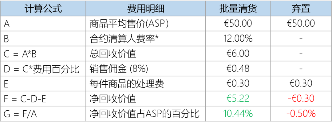 ▲ 如果使用批量清货,每件商品可以回收5.22欧,回收金额占商品平均售价的10.44% 。