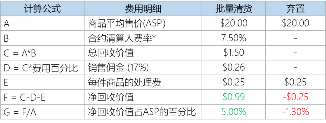 ▲ 如果使用批量清货,每件商品可以回收0.99美金,回收金额占商品平均售价的如5%。