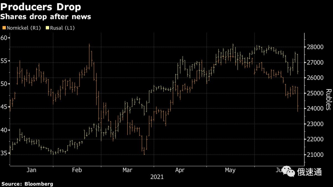 俄罗斯诺里尔斯克镍业(Norilsk Nickel)股价周四在莫斯科股市一度下跌6.3%,俄罗斯铝业(Rusal)的股价一度下跌7.9%。俄罗斯新利佩茨克钢铁公司(Novolipetsk Steel PJSC)和谢韦尔钢铁公司(Severstal PJSC)领跌钢铁类股。