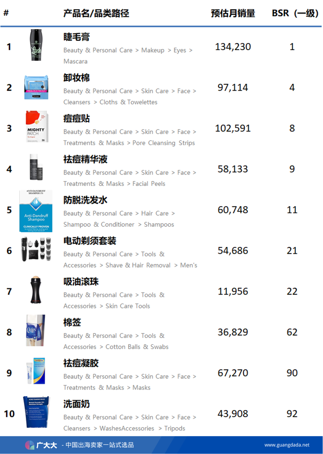 以下榜单通过广大大电商分析亚马逊选品数据板块,综合比对预估月销量、BSR表现、评论趋势、上架时间等数据,并去除重复度较高的商品得出。作为最早一批PrimeDay预热的品类,美妆个护品类的市场表现一直备受卖家和买家关注,根据近一周美妆个护榜单商品分布来看,明显护理类商品数量大于美妆类。其中,美妆类只有位于榜首的睫毛膏一款商品,其余9款均为护理类商品,包含皮肤护理5款、工具配件3款......原文转载