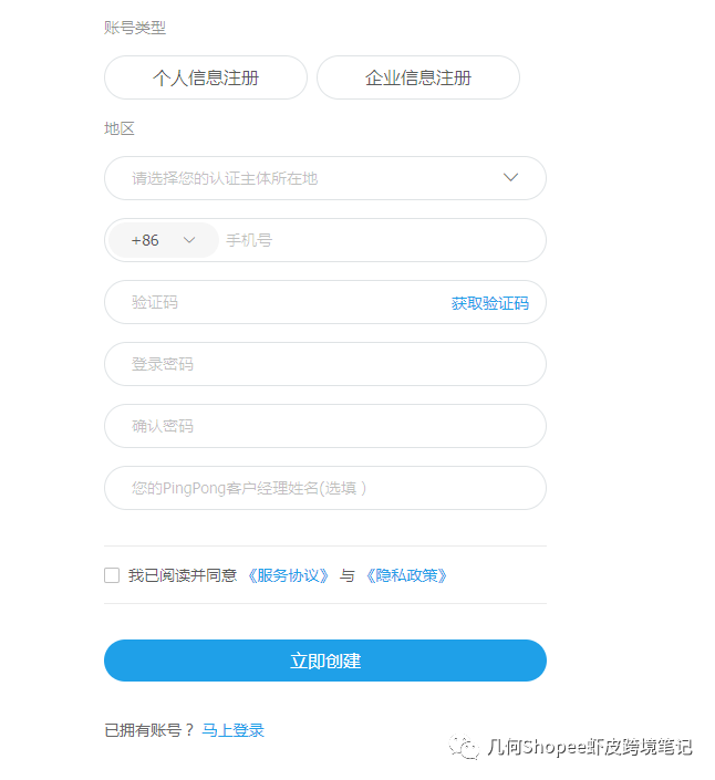 店铺下来的第一件事情首先去注册收款方式,建议使用pingpong, 通过我的链接去注册账号绑定虾皮,有3W美金的免费提现额度,相当于有20W人民币的免费提现额度,自己去注册是没有的!!