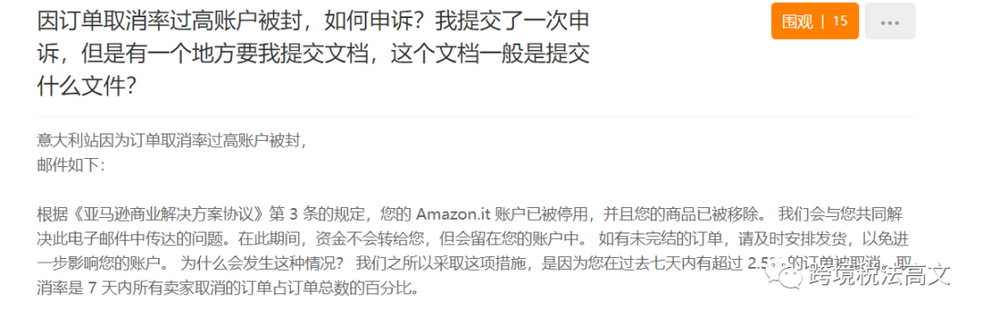 意大利站因为订单取消率过高账户被封,收到以下邮件。
