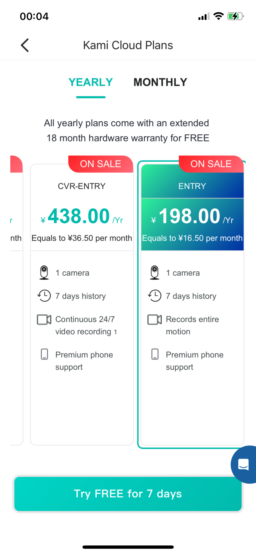 「YI Home」中唯一的付费点是视频内容存储和回看的云服务。购买产品后,用户可以直接通过 App 实时查看画面,但如果需要过后回看内容,则需要购买内存卡或者云存储套餐。多数智能摄像机品牌的云存储套餐会包括回看 30 天录像的月套餐和年套餐,且只在画面出现动态变化的时候上载录像。「YI Home」提供了选项更灵活的套餐,回看天数可以是 7、15、30 天,可以选择仅上载动态画面或者全时段画面。除此之外,云服务逐渐在增加新的功能,比如人脸识别、动物车辆识别、硬件保修、7*24 小时紧急呼叫等。而能提供这样 App 配置的品牌,硬件单价基本都到 50 美金以上了。