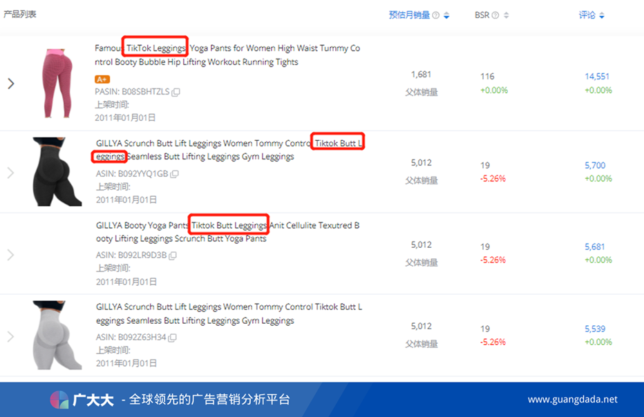 TikTok网红带火的塑形瑜伽裤成为了现象级爆款,其热度持续至今,不少亚马逊、速卖通卖家甚至将TikTok作为关键词以期获取流量。