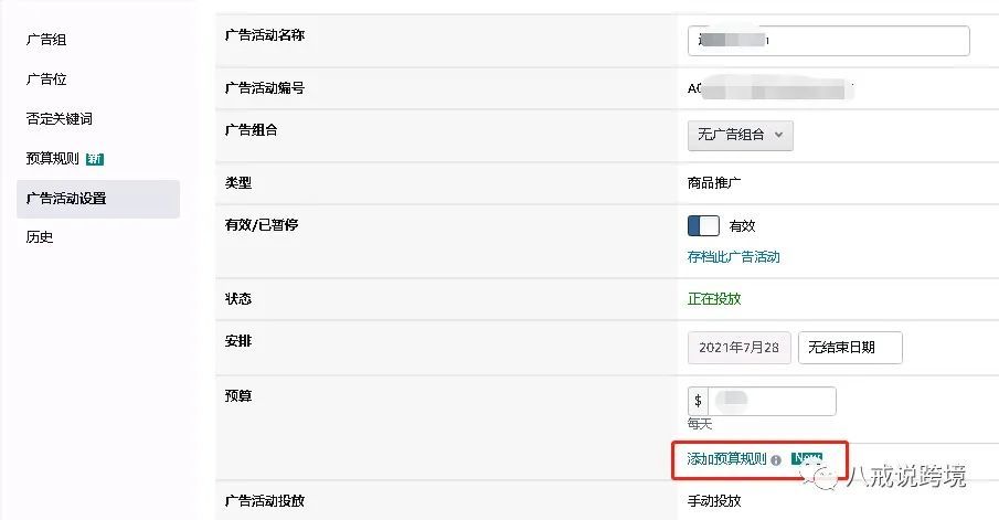 另一入口则是在【广告活动设置】-【预算规则】--【添加预算规则】