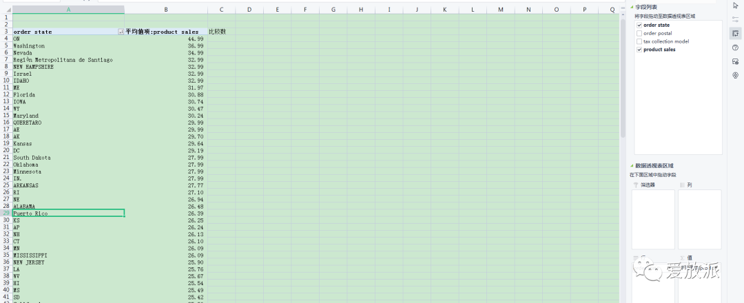 将order state拖入列,item-price值,这里值字段设置为平均值。