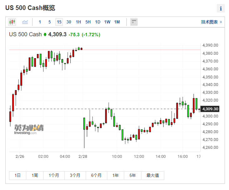 美股刚刚开始的反弹似乎已经要结束了。根据Investing.com的行情数据来看,纳斯达克100指数期货目前已经下跌了1.7%,美国标普500指数期货也跌近2%。