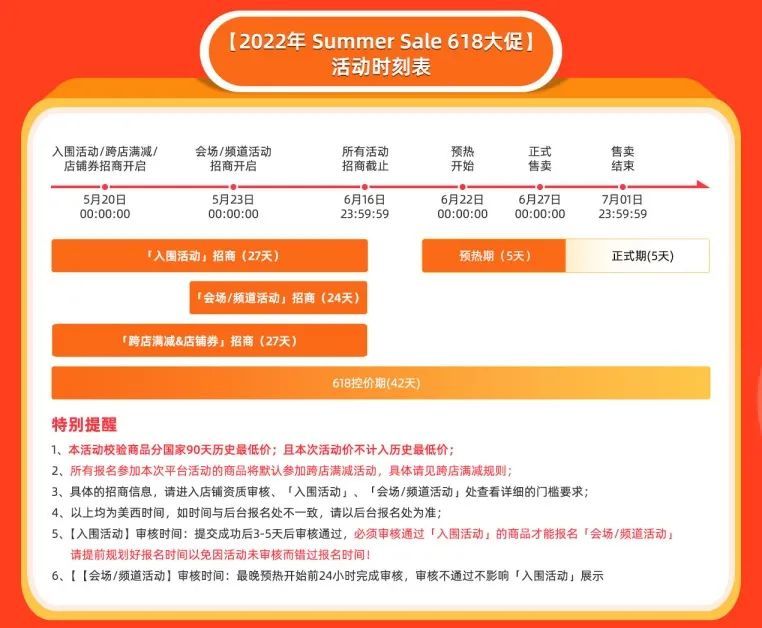 -速卖通-速卖通发布2022年SummerSale 618大促攻略据"速卖通草帽"微信公众号消息,日前,速卖通发布2022年SummerSale 618大促攻略。此次大促启用分国家招商,大促报名价格门槛按不同区域国家最低价分别进行校验。所有报名此次活动的商品均默认参加跨店满减活动,无特殊类目。需要注意,商家需在6月16日23:59:59前,完成618活动报名及优惠活动时间设置,避免因为未审核而错过此次大促。