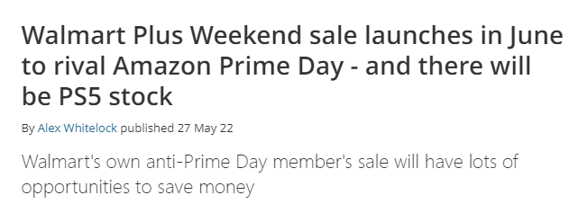 这个" Walmart+ Weekend"的活动虽然不是沃尔玛第一次搞,但是今年的时间点选择就很有意思,卡在了亚马逊的Primeday前一个月。外媒普遍评价沃尔玛的这个活动为"今年上半年最早的大型在线销售节"。