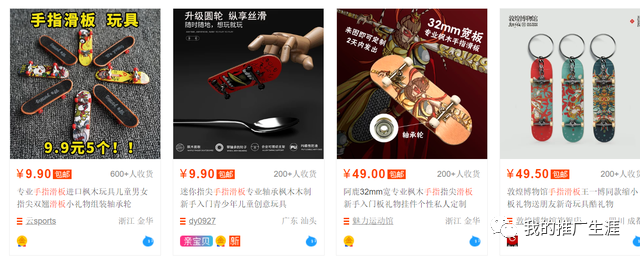手指滑板,国内外都有很多的粉丝受众,但是这不是一个最近几年才出现的市场,而是出现挺多年了,如下图淘宝上面也有众多产品,有9.9元5个的,也有49元一个的。