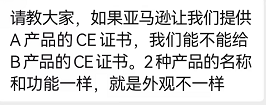 大致总结下问题就是,A产品和B产品外观不一样,没有A产品的CE证书,能否提供B产品的?
