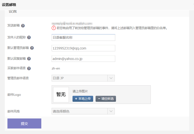 管理员接收邮箱(任意邮箱均可,顾客不可见)。
