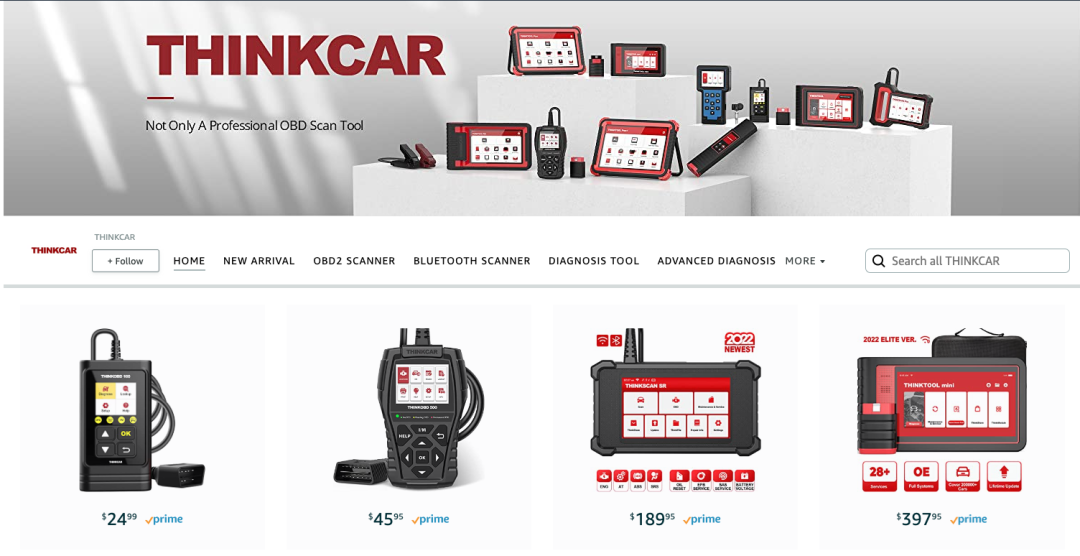 Thinkcar在亚马逊和沃尔玛都有销售。在亚马逊上,热门单品都rating超过2000个。