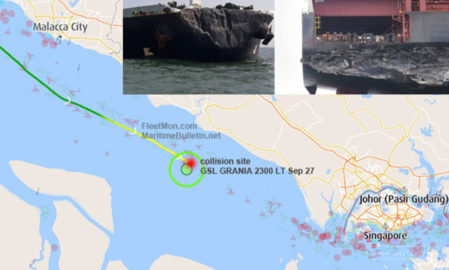 马六甲海峡出现严重碰撞事故!油轮撞上集装箱船GLS Grania!