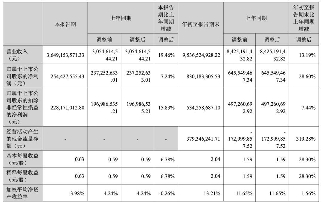 如果以三个季度合并计算,安克创新实现营业收入95.37亿元,直逼百亿,同比增长13.19%,实现归属于上市公司股东的净利润达到8.30亿元,同比增长28.60%。经营活动产生的现金流量净额3.79亿元,同比增长319.28%。