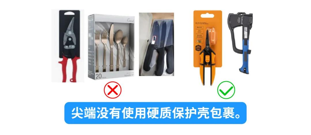 ▣外箱贴"尖锐物品"警示。