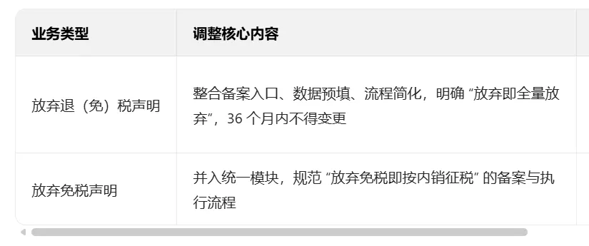 PART.01正确的时间做正确的事出口退税申报系统升级调整两类放弃声明业务,核心是规范税务合规与征管秩序、提升系统效能与数据治理、强化企业自主决策与风险约束,同时适配跨境电商等新业态,推动外贸高质量发展。以下从多维度展开解析: