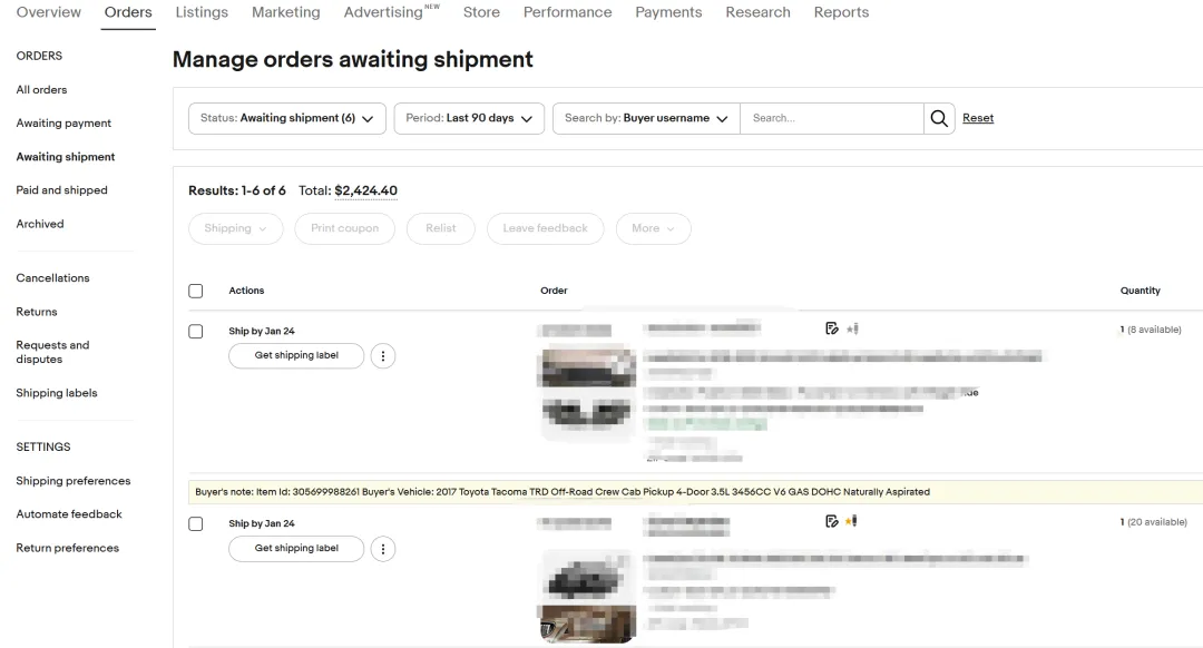 进入Seller hub后台查看在休假期间是否有待发货订单,并及时进行发货处理,尤其是在休假模式中设置了Allow item sales while on time away的卖家。该模式设置完之后,买家在卖家休假期间依然能够看到店铺的在线物品刊登,也可以进行下单购买,只是前台预计送达时间会自动延长。因此春节休假结束后,卖家需要在Seller hub后台查看是否有待处理订单。