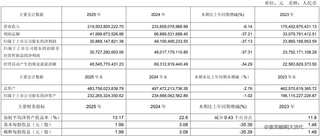 归属于上市公司股东的净利润308.68 亿元,同比下降 37.13%;